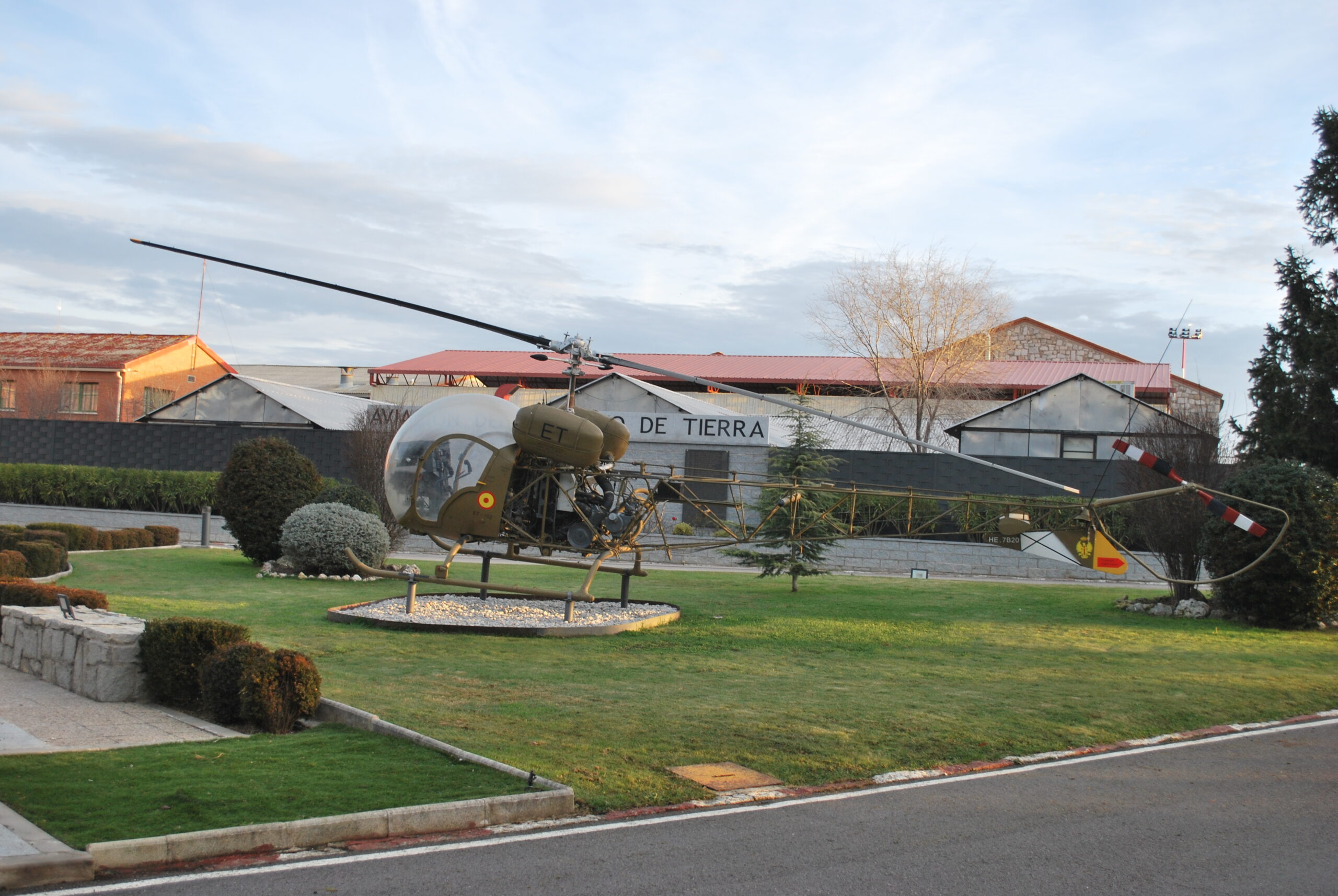 A lo largo de la Base «Coronel Maté» se puede contemplar la exposición de los distintos helicópteros que han tenido las unidades de la AVIET a lo largo de su historia.