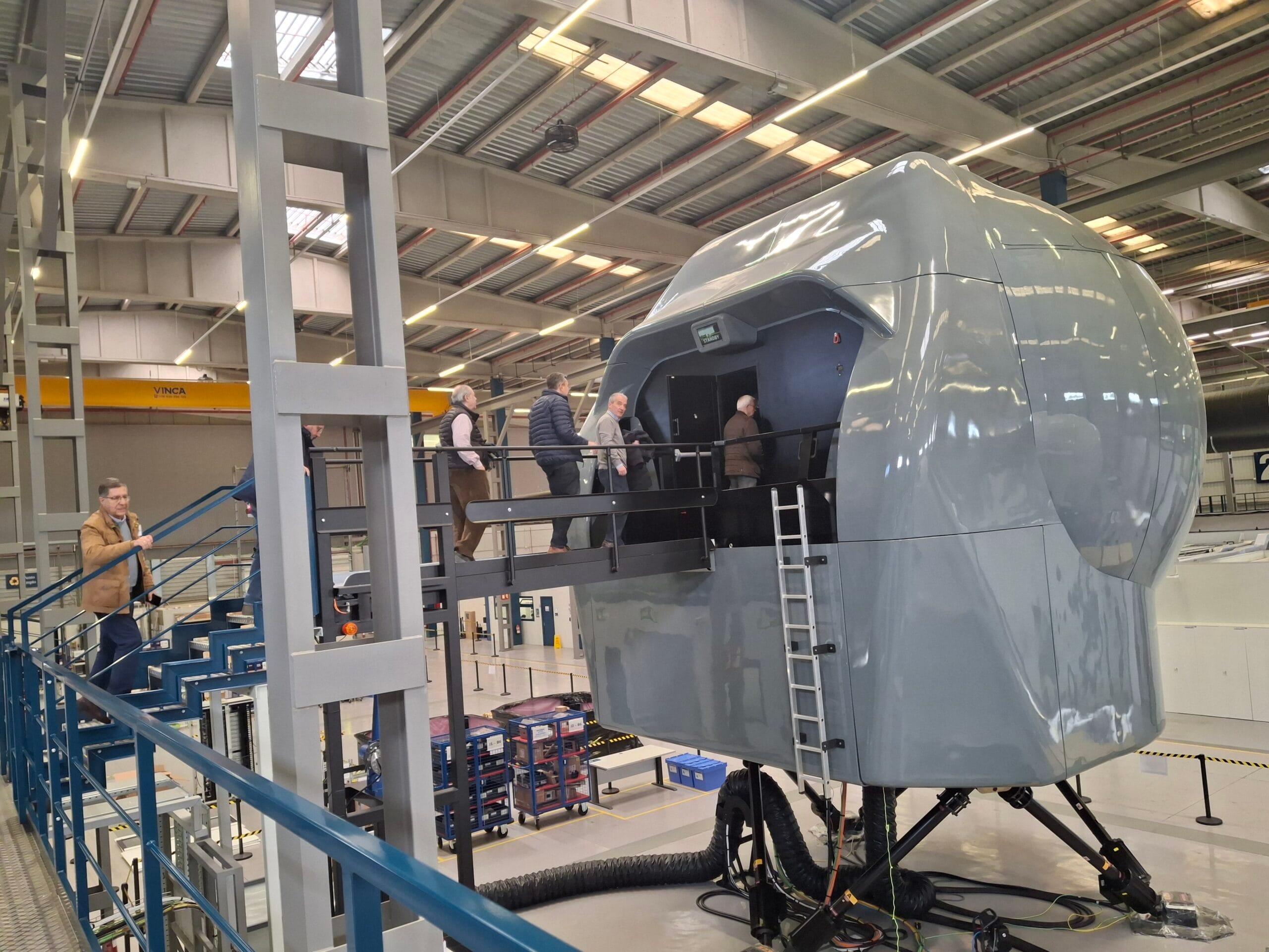 Durante la visita pudimos comprobar de primera mano cómo esta multinacional tecnológica española de referencia, y una de las líderes mundiales en el desarrollo de simuladores de misión de nivel D para aeronaves de ala fija y rotatoria, tanto militares como civiles, es pionera en el desarrollo de nuevos simuladores tácticos. Estos sistemas incorporan realidad virtual, realidad aumentada y las más avanzadas tecnologías digitales, integradas en un entorno sintético dotado de un planificador de misión asistido por inteligencia artificial. Esta capacidad permite la creación ágil y eficiente de escenarios tácticos complejos mediante el uso de comandos en lenguaje natural.